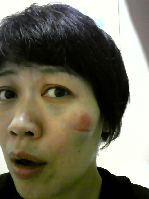 幸い(?)ほっぺたの打撲。
