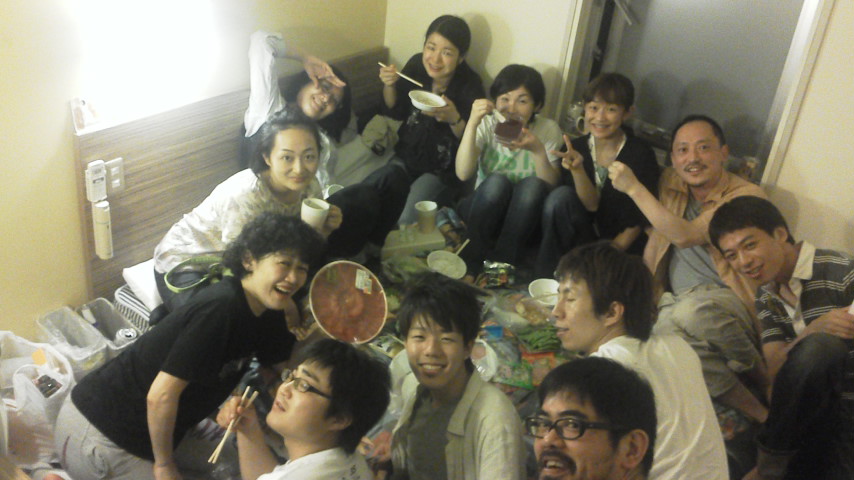 飛行機組をハイエースで空港までいっくんとしんちゃんに送らせて、さあ!ハイエース、トラック組はスーパーホテルの一室で、大宴会!