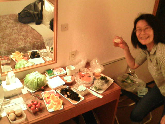 二日目の夜は節約モードで町の市場みたいな所で野菜を買って部屋で夕食。