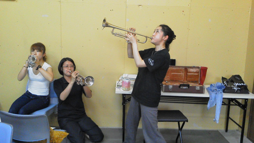 19日の日曜日には、9月公演のプレ稽古!という事で旅で別れていた座員が全員集合。今回の公演では役者が楽器を吹いたり弾いたりする。