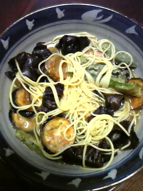 そして、出かける前には、これも無人販売所の茄子とオクラを素揚げしたのをラーメンに入れて食す!
