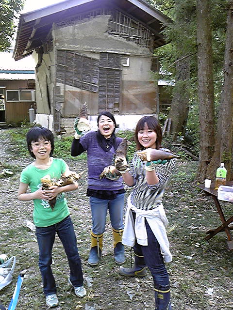 酔ってた岡原とは違い大量に筍を掘る娘達。