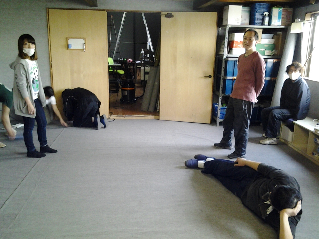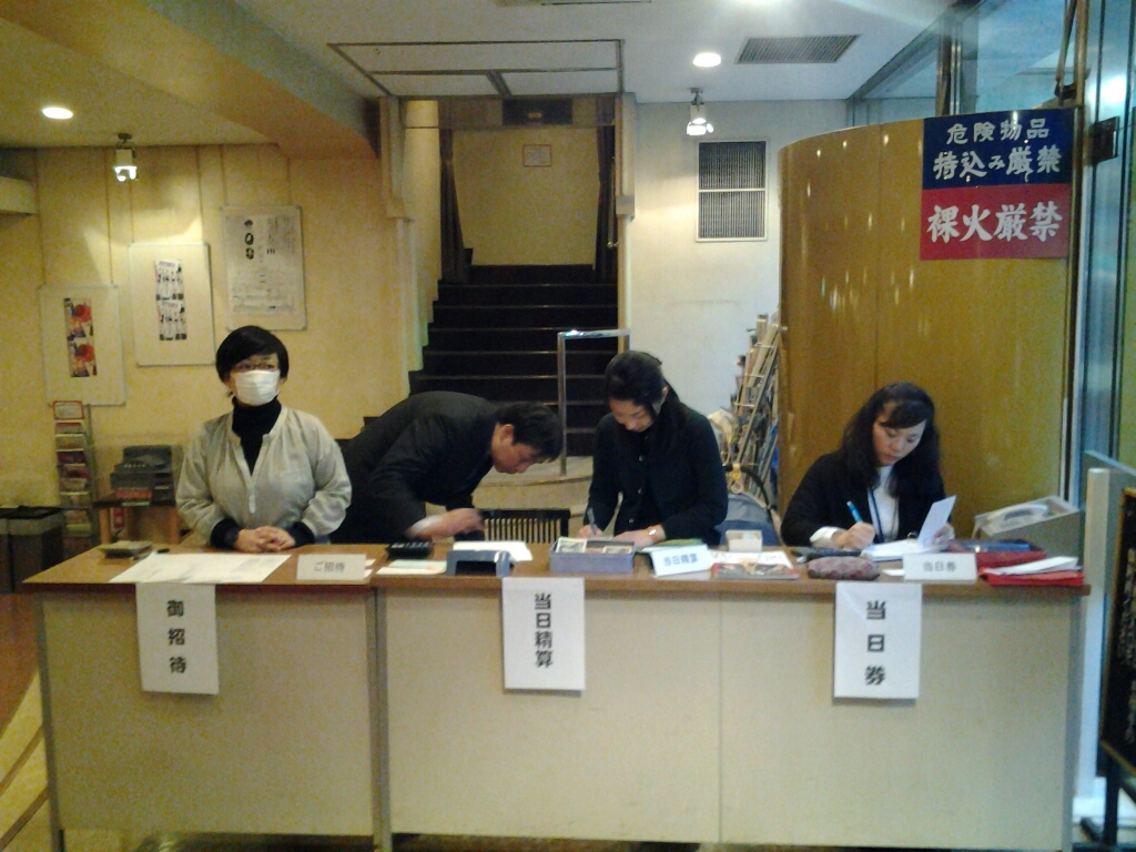 新入座員はいつも掃除からはじまる。うた会の為に作った座席にみんなで座って二人の挨拶を聞く。