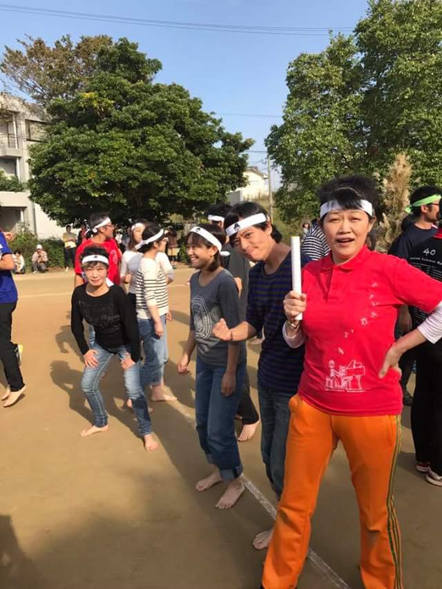 写真は旅の途中で参加ができたやまなみこども園の運動会!こんにゃくチームとしてリレーに参加!岡原はトップランナーで見事に半周以上、差をあけられて、チームは予選落ちでした。ごめんなさい。