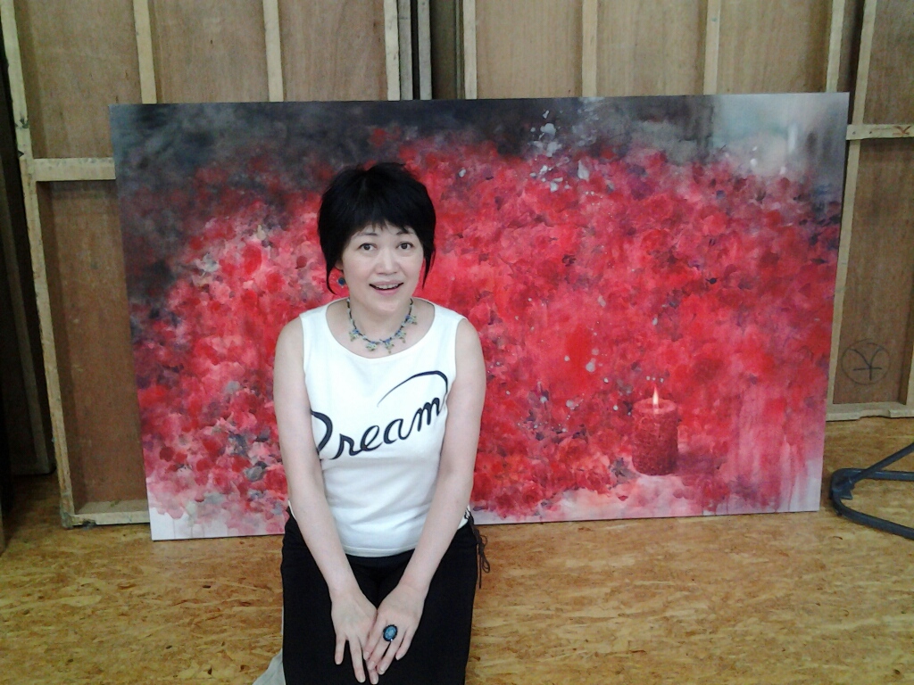個展が終って、彼女のアトリエに行って大きな絵を5枚も借りてしまった。