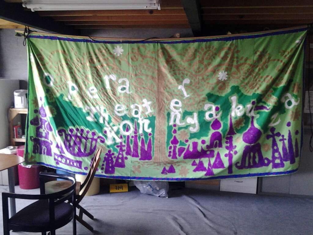 この幕は26年前頃、座の研修所に通っていたあまな(永山裕子ちゃん)が、書いてくれた幕だ。