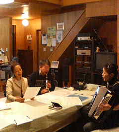 クラリネットの橋爪さん、女優の新井純さん、わたくし岡原がアコーディオンを弾くユニット。橋爪さんの奥様がマネージャー!