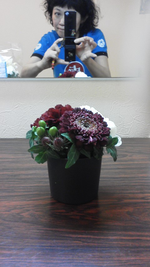 今、島根県のホテル。関係してくださった戸田さんがみんなに花を!これでホテルライフが癒やされます。