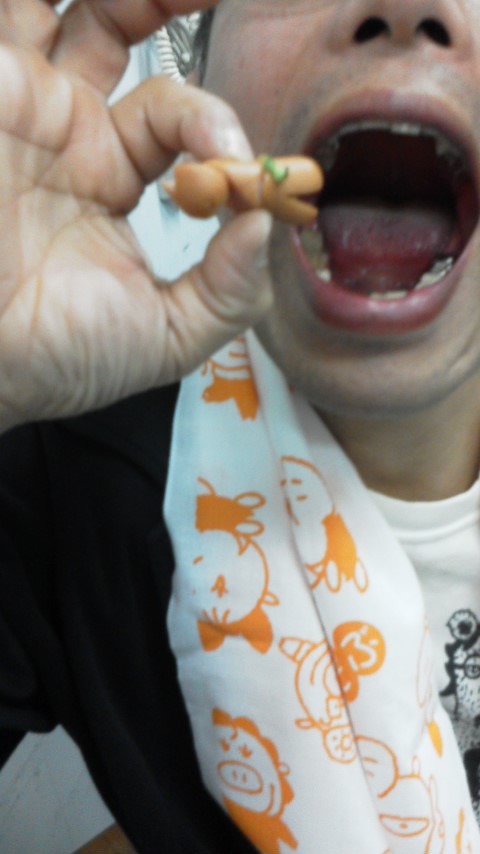 ウインナーの鯨をパクリ。