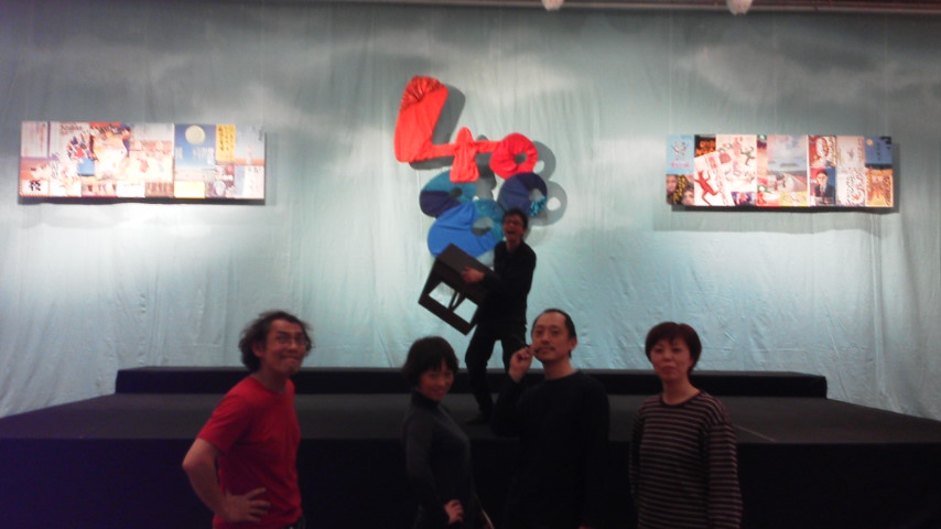 大石デザイン、忠地、石窪、高野作成の40と80を合体させた文字版、ポスターを組み合わせたものを、ロボットで使っていた青空幕というものの前に吊りました。