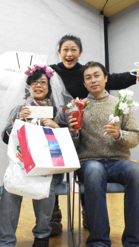 忘年会では、最近入籍した制作の二人にサプライズでお祝いをしたのでした!