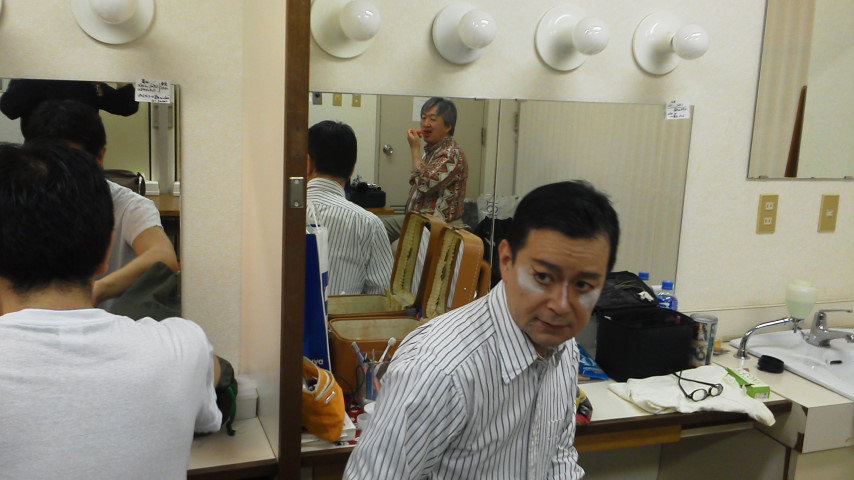 りえちゃんはメイクを途中までにして稽古して、パンタローネのまま、人の世話をする。