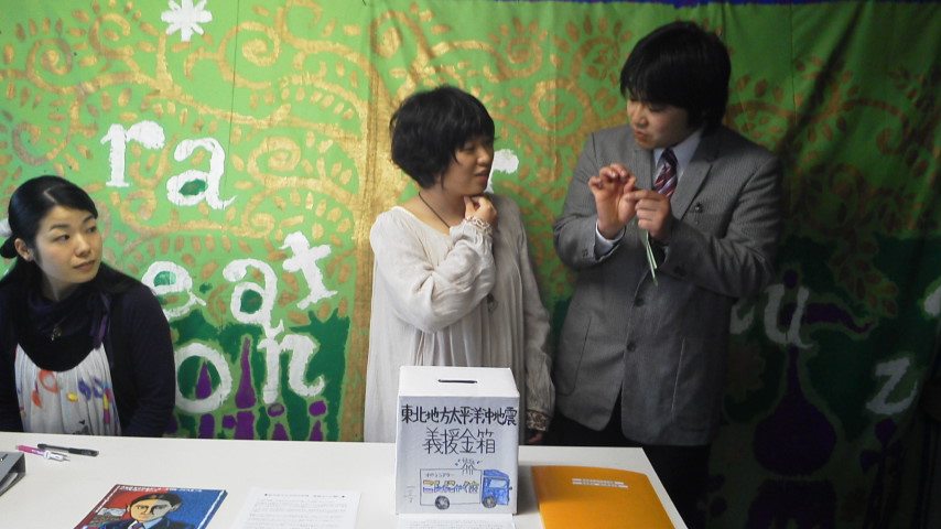3月末の西田、島田、太田、それぞれ三人のコンサートから歌会で、高田高校にむけての義援金を募っている。