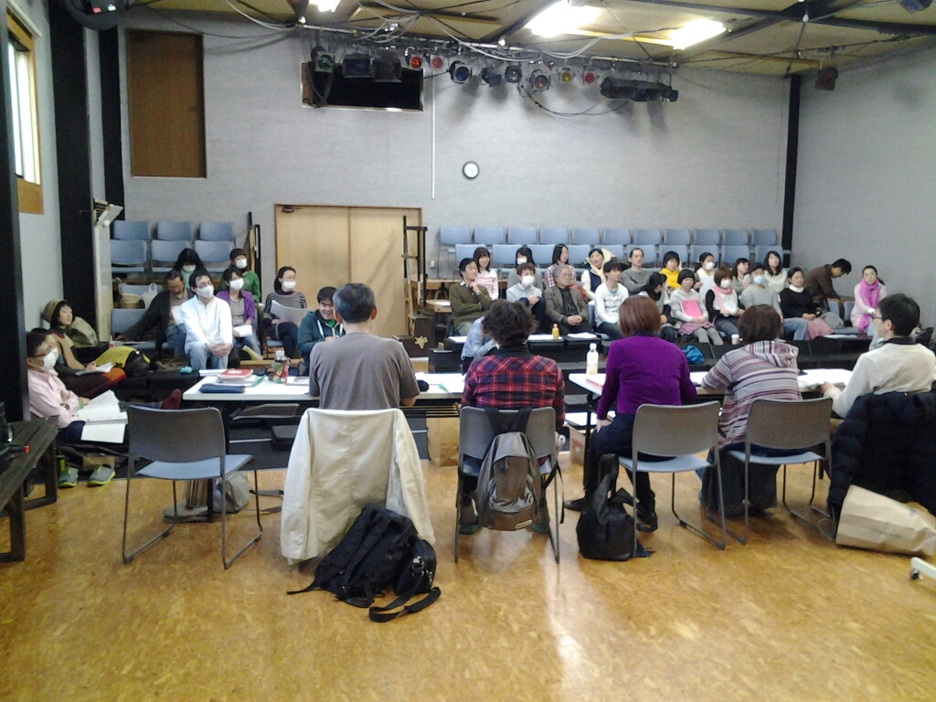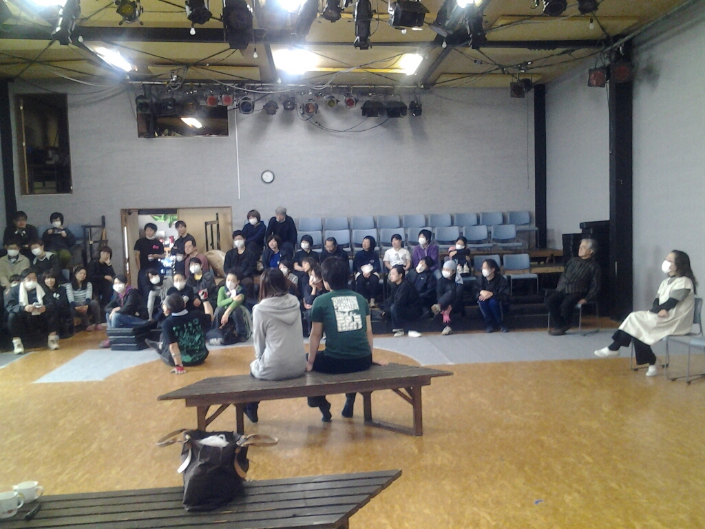 新入座員はいつも掃除からはじまる。うた会の為に作った座席にみんなで座って二人の挨拶を聞く。