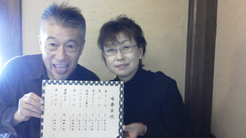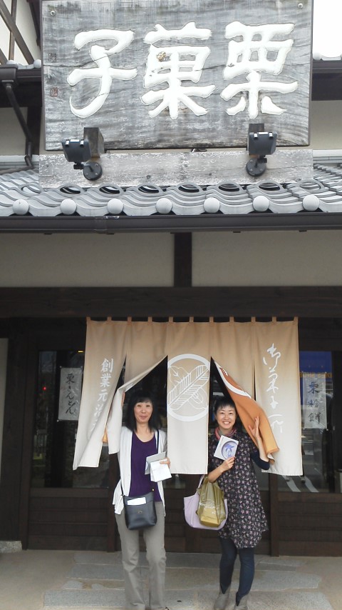 ワークショップの送り迎えにチュージ夫妻が来てくれて、恵那で有名な川上屋というお菓子屋でお抹茶飲んで、栗きんとんたべて!