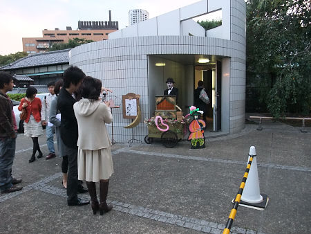 構成、演出、出演の大石氏は落ち着かないのか、開場中、外で立っている。