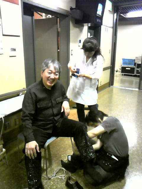 上と下ではおおちがい〜って歌があるが、上(舞台)下(楽屋)の楽屋では、おなじみの楽師のクラリネットの橋爪さんが、呑気に衣装さんに足下の刺繍を手直ししてもらっていた。この人の顔をみるだけで癒される。