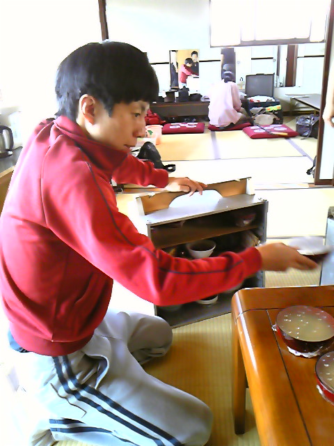 ほとんどの座の旅の場合、仕込みの都合上、各セクション(照明やら舞台やら)に別れての食事になる。だが、今回のゴーシュの場合タイムスケジュールがうまくみんな一緒に食べられる。