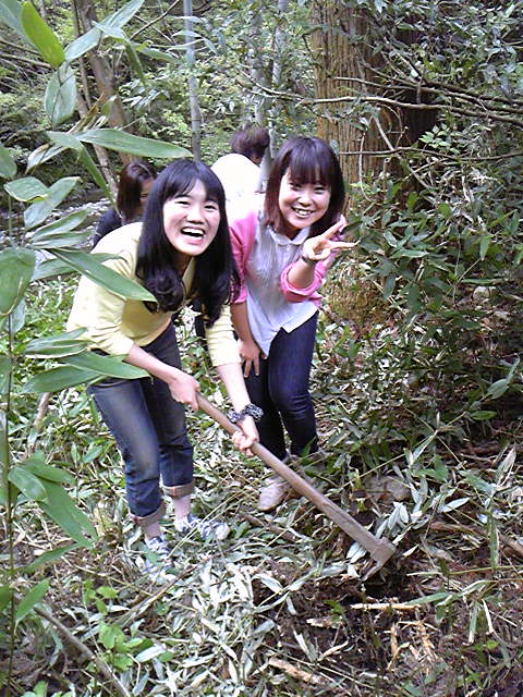 かわいい女子大生?(とうこ大、みきさま)は筍を掘っている。