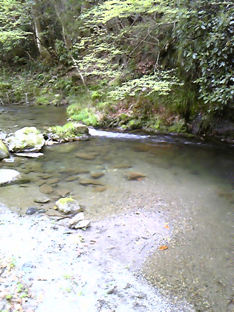 この河を渡り、筍をほったり、ホースをひいたり・・・。