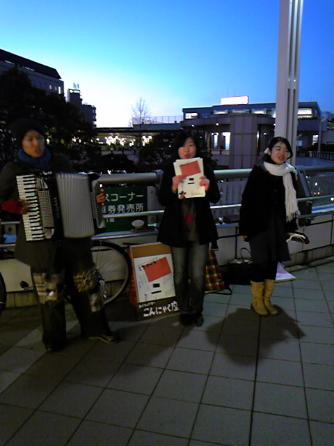 たまに、稽古が早く終わって、溝ノ口を歩くと、健気な後輩達が街頭宣伝をしていたり…。