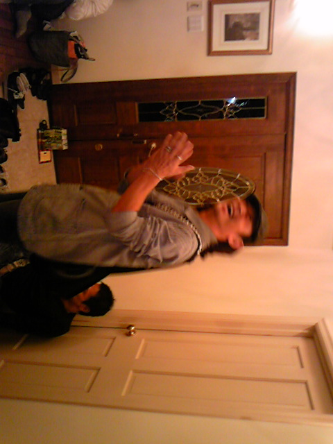 そして、最後のデザートは玄関の吹き抜けの階段の下に座りこみ・・・。