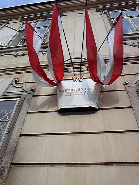 ウイーンではこういう旗が出ているのが、昔、誰々が住んでいた家・・・みたい。