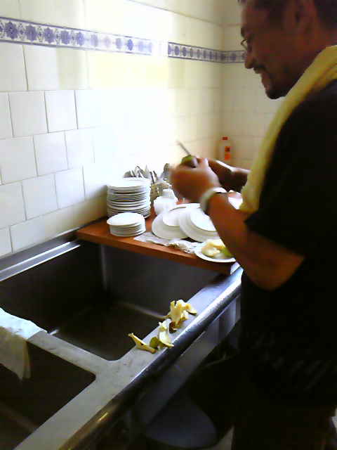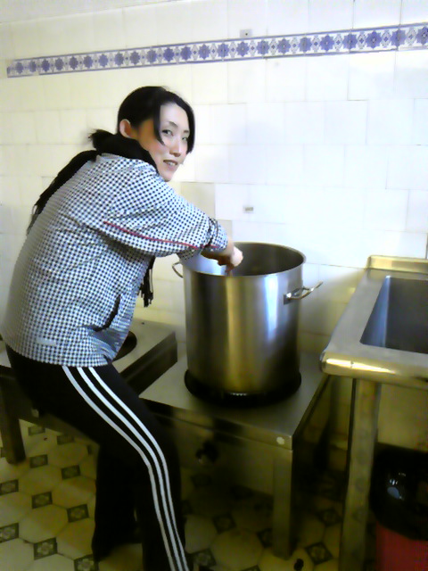 マクベスの魔女を思い出させるこの大鍋で、みんなのスープを煮てくれているりえ。
