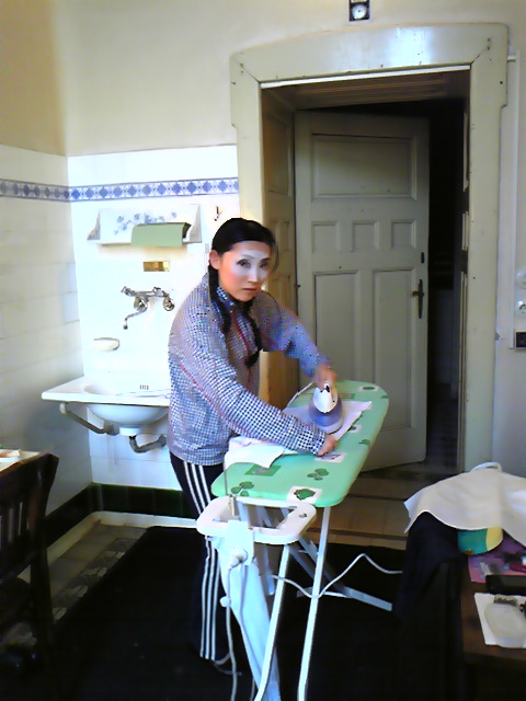自ら、洗濯物の横に座ってくれたのは衣装チーフの、りえちゃん。