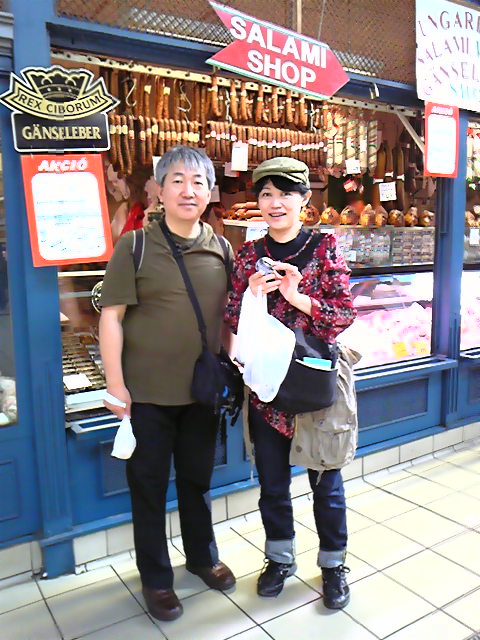 ハンガリーの市場で、お土産のフォアグラのパテを買っている写真。