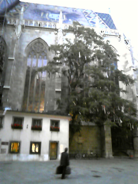 ちなみに、このシュテファン教会、外装工事中だとかで、教会の写真の大きな幕が張ってある・・・。なんだかなあああ。