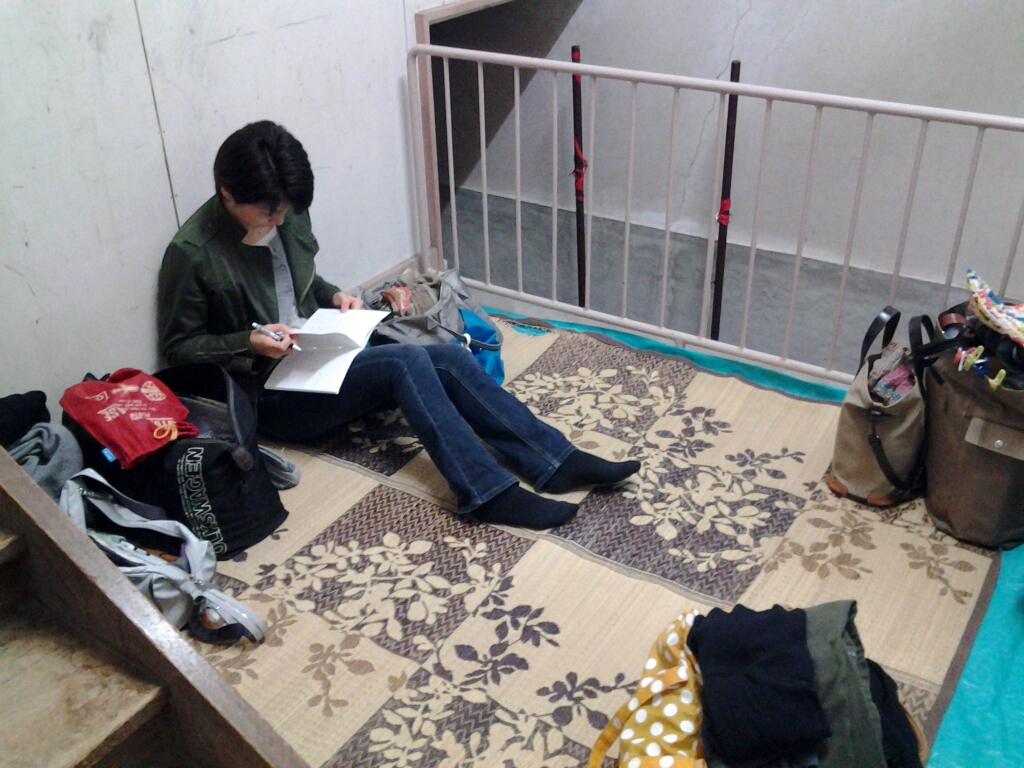 その佐藤先生が体育館の楽屋部分に心遣いで敷いてくださった敷物の上のゆだやん。
