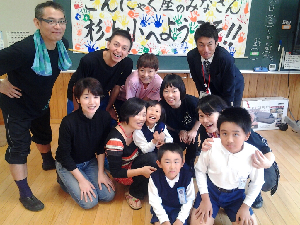 熊本でこんにゃく座を呼ぶのが夢だったといってくださった田中洋子先生のクラスの子供たちとゆだやん。