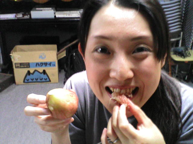 その横で稽古場のそばの道端で売っているイチヂクを毎日食べる理恵!
