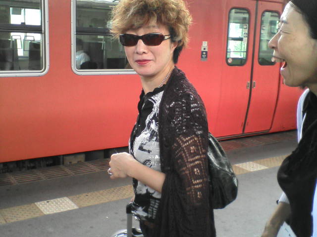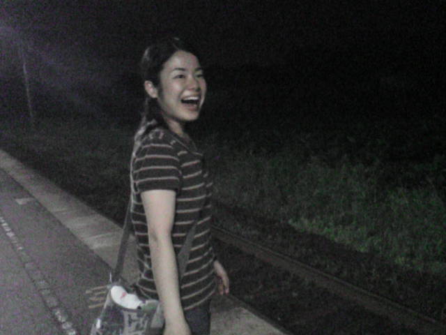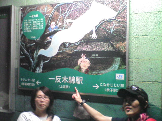 公演が終わってもまた移動。鬼太郎列車は単線。無人駅は田んぼの中。チャミが『猫バスがきそうですねー』と喜んでいる。すると、妖怪電車がきた!