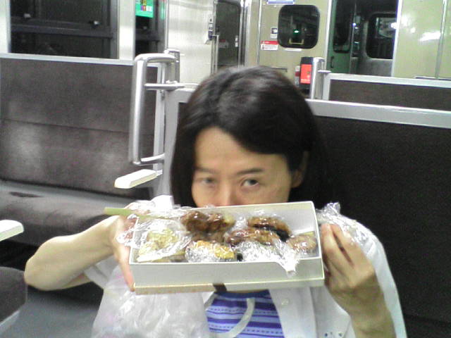 電車の中では、彦ちゃんが、今日の小屋食を、小分けにしてくれている。
