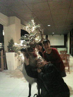 新潟のホテルにクリスマスツリーとトナカイがいた。